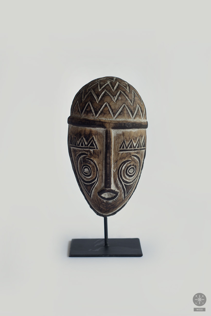 Tikmedžio kaukė ant metalinio stovo